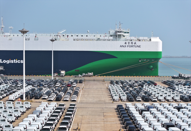 4月10日,在江苏省连云港港东方港务分公司船埠,滚装轮停在泊位装载出口汽车。中国汽车工业协会4月10日发布数据炫耀,2026年3月,我国汽车产销别离完成291.7万辆和289.9万辆,环比别离增长74.4%和60.6%。其中新能源汽车产销量别离为123.1万辆和125.2万辆。新华社发