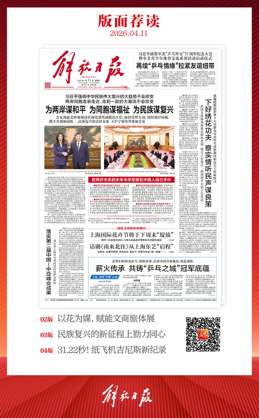 早上好!上不雅新闻『早读』来啦!今天是2026年4月11日星期六,农历二月廿四。