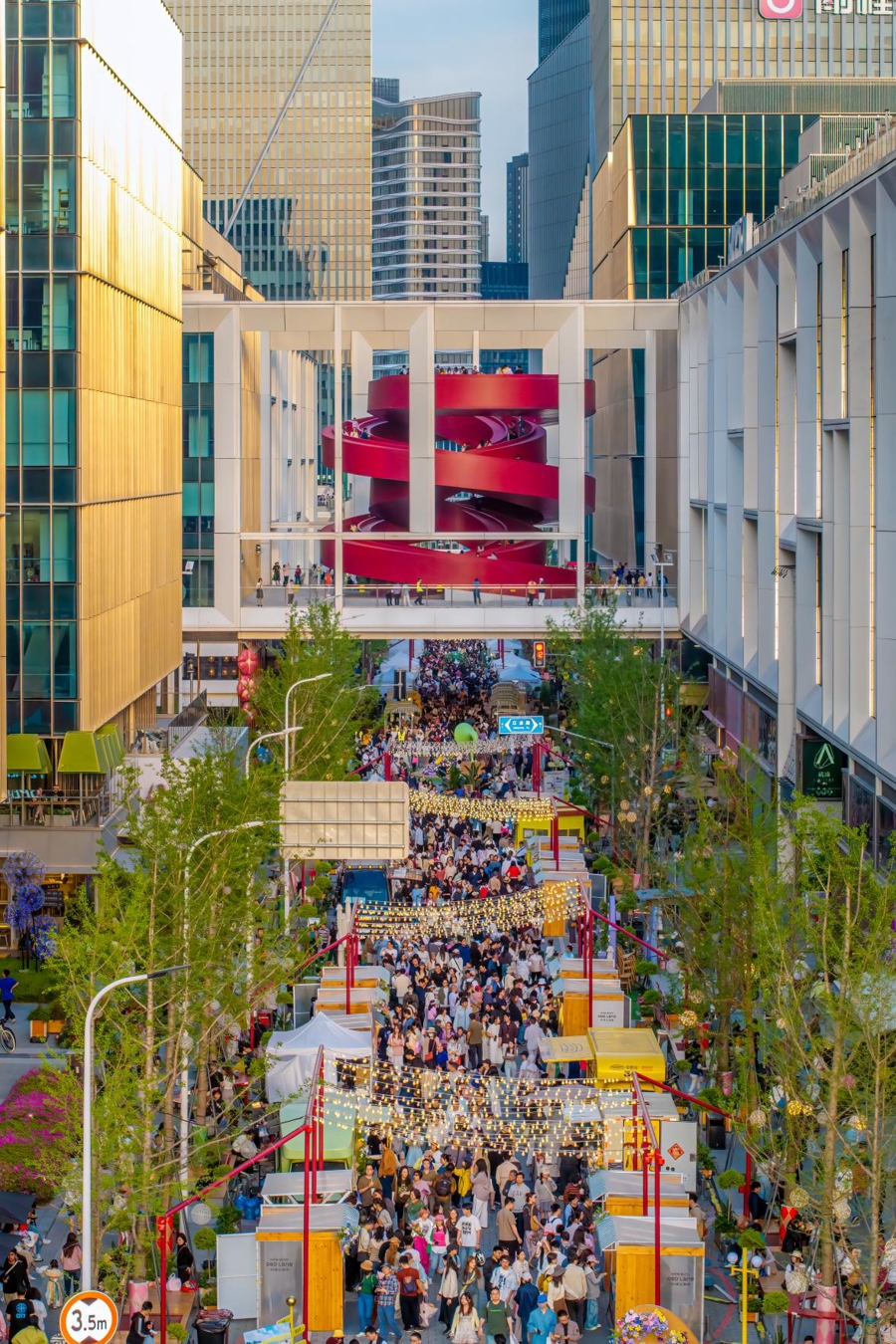 尤其是每逢周末和节假日,作为浦东“巷式商业”新标杆的前滩公园巷,便会“变身”成为限时步行街:车辆让位,取而代之的是市集、演出与漫步的人群。“膨胀面包节上海站”“前滩国际美食节”“ 早春非遗生活节”……一场场重磅商业市集,让开放、灵动、充满节日感的街道重新定义了消费场景,让消费成了融合探索、社交、休闲与文化的复合体验。