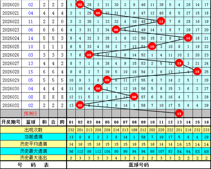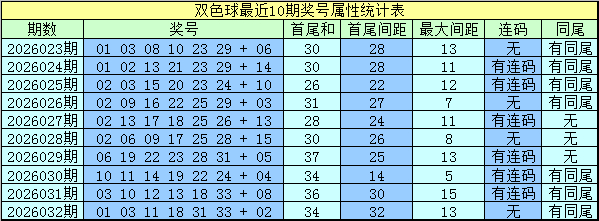 上期开奖:福彩双色球第2026032奖号为:01 03 11 18 31 33 + 02,红球和值为97,最大间距为13,奇偶比为5:1,三区比为3:1:2。