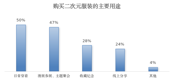 走访还清楚,二次元服装已从“漫展放胆”变为“日常标配”。在二次元摧毁群体里,有一半已把二次元服装“焊在身上”。诚然,漫展约会已经是二次元服装的进攻战场,47%的摧毁者会为了这类处所全心准备。