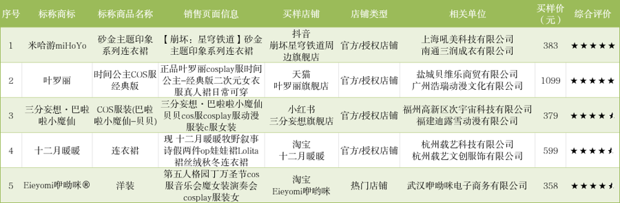 除了问卷走访,消保委也在线上买了30款Cos服和IP联名款服装进行测评。购买过程中,配资门户网官方出品或有明确授权信息的服装并未几,只买到4款正版,占比13%,价钱在379-1099元。其余都购自普遍二次元服装店,价钱在60-634元。