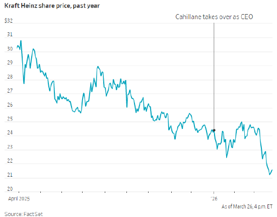 卡夫亨氏前 CEO 卡洛斯・艾布拉姆斯 - 里韦拉与董事会旧年夏天认定,最好出息是将公司分拆,把各人调味品业务与北好意思杂货业务别离。但到了秋季,卡夫亨氏已在高明寻找新任 CEO。时任董事会副董事长、负责拆分事宜的委员会主席约翰・卡希尔,筹商了卡希兰。