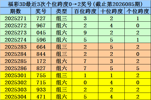 第2025283-第2025285期奖号:664、844、172,其下期奖号为:827,末位号码跨度为7;