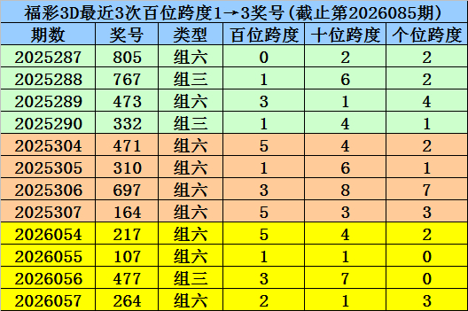 第2026054-第2026056期奖号:217、107、477,其下期奖号为:264,首位号码跨度为2;