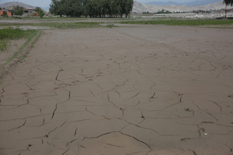 这是4月13日在阿富汗楠格哈尔省拍摄的急流退去后的地面。 新华社发(塞夫拉赫曼·萨菲摄)