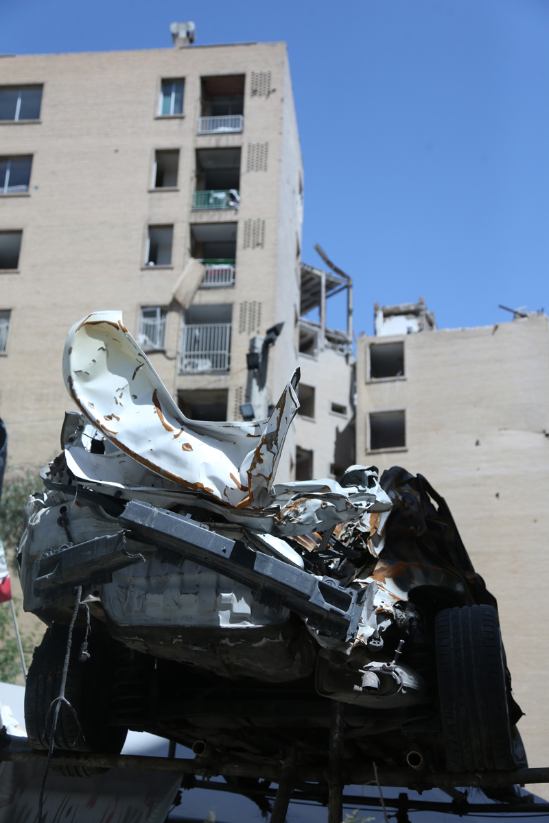 这是4月14日在伊朗都门德黑兰东南部一处住户区拍摄的遭好意思以蹙迫严重损毁变形的车辆。 新华社记者 沙达提 摄