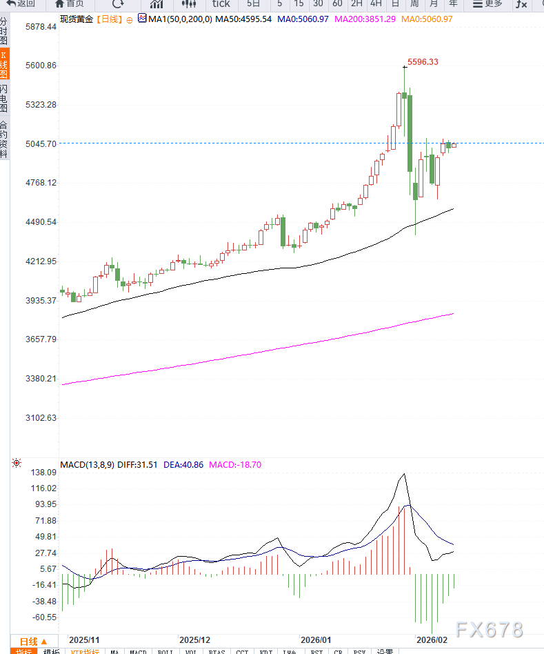 从日线图来看,XAU/USD近期在5,050好意思元上方颠簸回升,自满短线多头试图重拾主动。日线均线系统自满,价钱保捏在关节200日均线之上,短期5日与10日均线朝上,呈撑捏现象,强化了举座偏多面目。